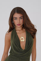 Make a statement with the Sculpted Gold Abstract Pendant Necklace, a bold piece designed to stand out. Featuring a large, fluidly shaped pendant with an organic cut-out design, this necklace strikes the perfect balance between modern art and timeless elegance. The high-shine gold finish and chunky chain add a luxurious touch, making it the ultimate accessory for day-to-night styling