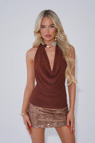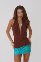 The ultimate statement top, Lucia brings effortless glam with a plunging draped neckline and a sleek halterneck tie. Cut from a soft, fluid fabric that skims the body, it’s made for nights that call for drama.