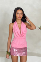 The ultimate statement top, Lucia brings effortless glam with a plunging draped neckline and a sleek halterneck tie. Cut from a soft, fluid fabric that skims the body, it’s made for nights that call for drama.