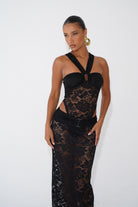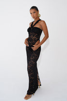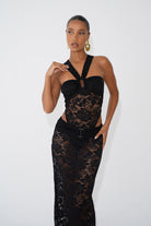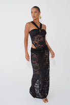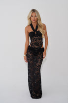 A lightweight lace maxi skirt with a ruched waistband and matching buckle detail. Designed with a high slit for ease of movement and a flattering drape, it’s an effortless layering piece for any occasion.